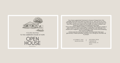 Cameron’s House of Hope is a sanctuary for children affected by parental substance use disorder. We provide counseling, tutoring, and the love of Jesus to help children heal emotionally, mentally, and academically. Here, they find support, hope, and a chance to break the cycle of addiction, rebuilding their lives and futures with faith and purpose.